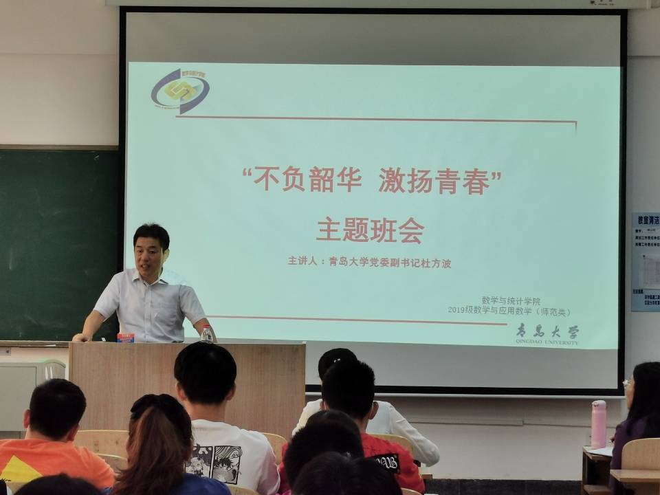 9月17日上午,校党委副书记杜方波深入永利集团3044联系班级,在浮山校区博远楼205教室,参加了2019级数学与应用数学(师范类)班级“不负韶华,激扬青春”主题班会。班会由学院党委副书记张雪蕾主持,2019级辅导员朱雨彤及班级全体同学参加。